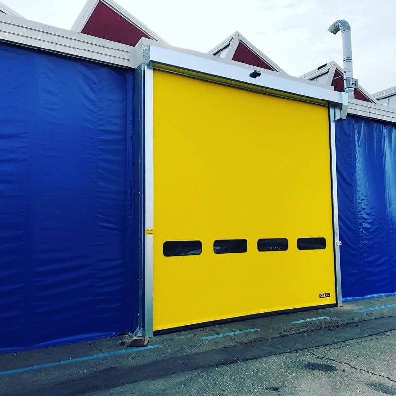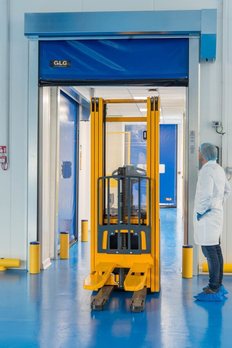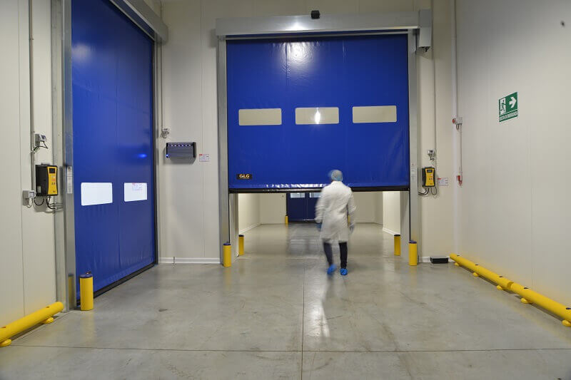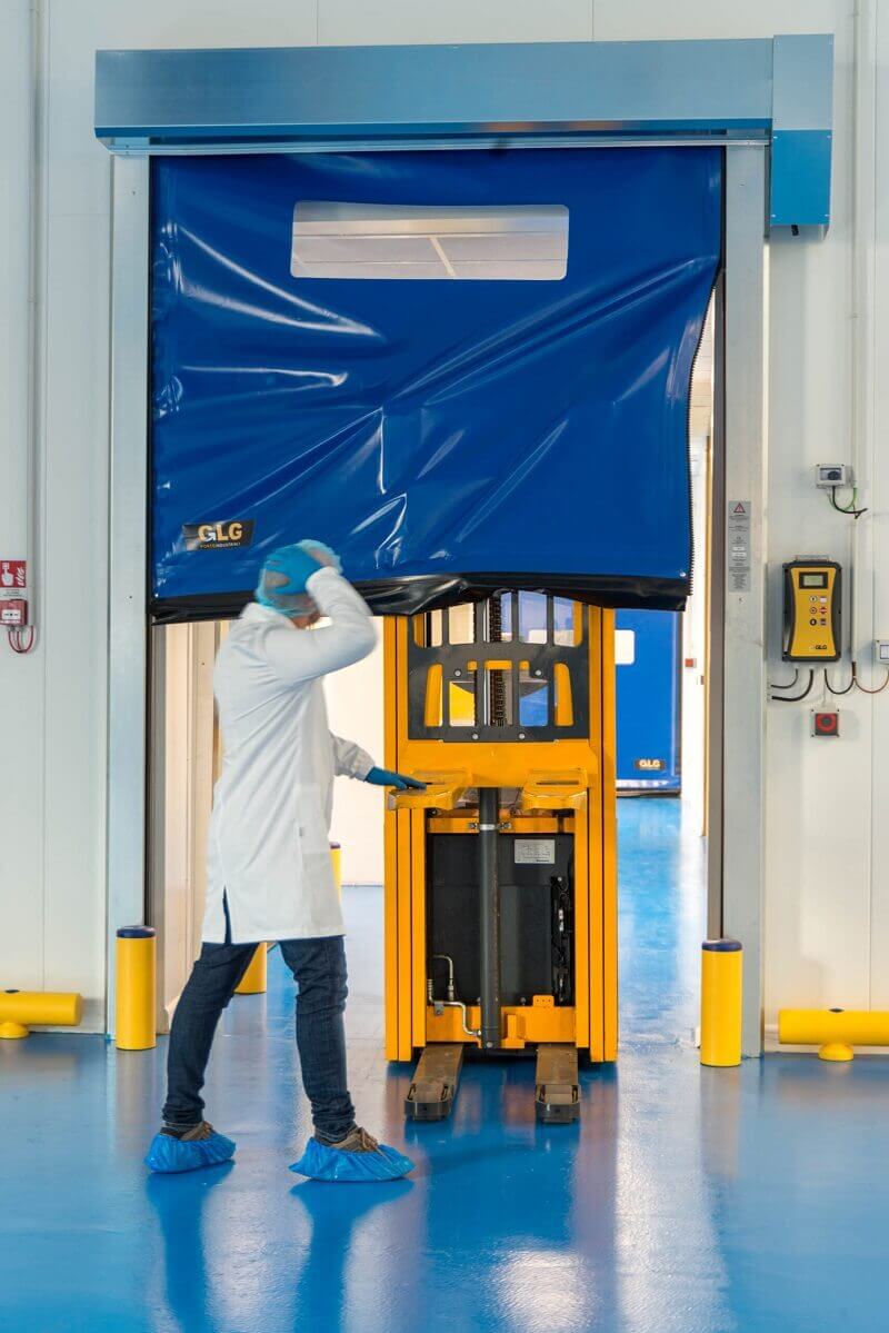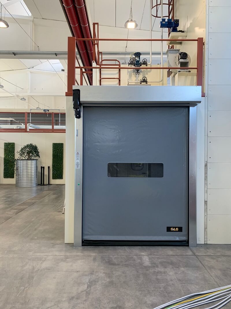 La porta rapida RolliZIP possiede un’elevata velocità di apertura (fino a 2,2 m/s) e, se urtata, può riprendere subito ad operare grazie al particolare sistema di riarmo del telo (ritorna all’interno delle guide in modo automatico). Funzione di auto-riparazione e “soft start & stop” di serie.