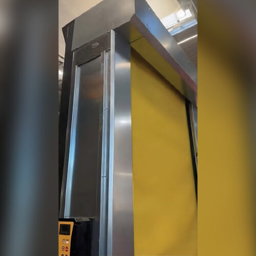 Con una velocità di apertura fino a 1,8 m/s e chiusura fino a 0,8 m/s, consente un flusso rapido e sicuro di persone e mezzi, riducendo i tempi di attesa e migliorando l’efficienza logistica. La porta supporta inoltre un ciclo di 1.000.000 di aperture/chiusure, garantendo durata e affidabilità nel tempo.
